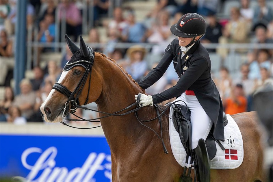 Med deres evigt smukke freestyle, overbeviste de endnu engang os, dommere og publikum om deres enorme styrke! Nanna og Zepter smyger sig smidigt, harmonisk og yndefuldt over verdens dressurbaner – og det bliver fuldt ud belønnet med adskillige 10-taller både for harmoni mellem hest og rytter og for musikken. Med 88.730 %, placerede de sig nemlig på dagens 2. plads.